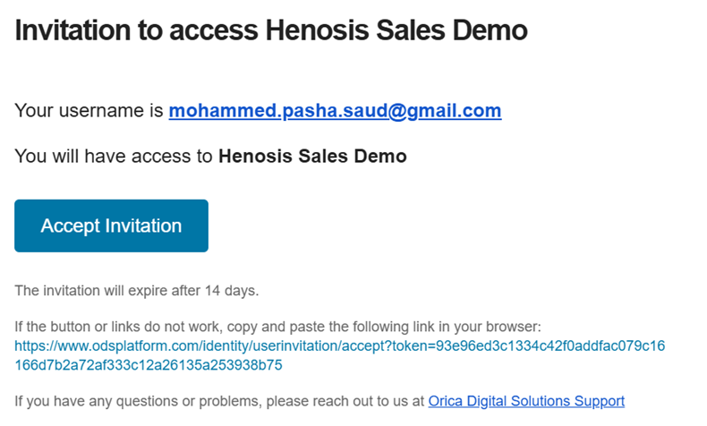 User will get an email with the invitation