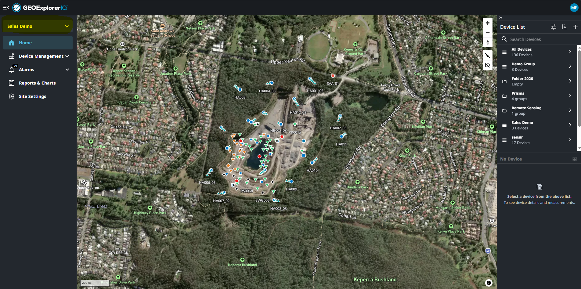 Choose the project in the top left drop down selections for Map and device list to load.